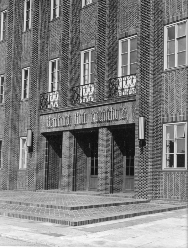 Die Planung und der Bau des Gebäudes fanden in den 1930er Jahren statt. Architektonisch ist das Aussehen an die norddeutsche Backsteingotik angelehnt. Noch in der Planungsphase wurde eine neue Zweckbestimmung festgelegt als eigenständige Hochschule für Lehrerbildung (1937), die ab 1942 als Lehrerbildungsanstalt fortgeführt wurde. Der Gesamtkomplex bestand aus sechs Gebäuden. Drei, einen Innenhof umfassende, niedrige Gebäudeteile mit Instituts- und Verwaltungsnutzung, einem Gebäude für das Naturhistorische Museum, einem Turnhallenbau und dem Turmgebäude als Hörsaalbau mit Sternwarte. Die Einweihung des Gebäudes fand am 23. Mai 1937 als "Bernhard-Rust-Hochschule" statt. Bernhard Rust war der damalige Reichs- und Preußische Minister für Wissenschaft, Erziehung und Volksbildung. Der Neubau galt als Beispiel spätexpressionistischer Architektur der NS-Zeit im Sinne offizieller Staatsarchitektur.